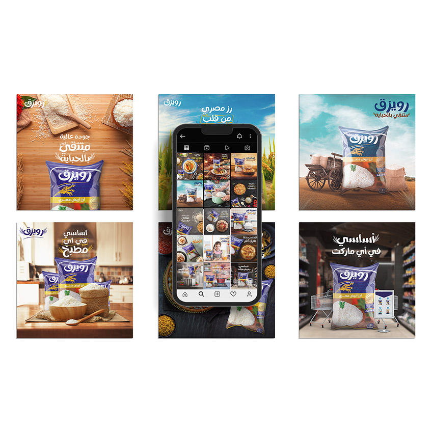 Rwizk is a brand that sells high-quality rice and other grains and approached Grow Up Marketing Agency to help with a complete rebranding and unique packaging design.
